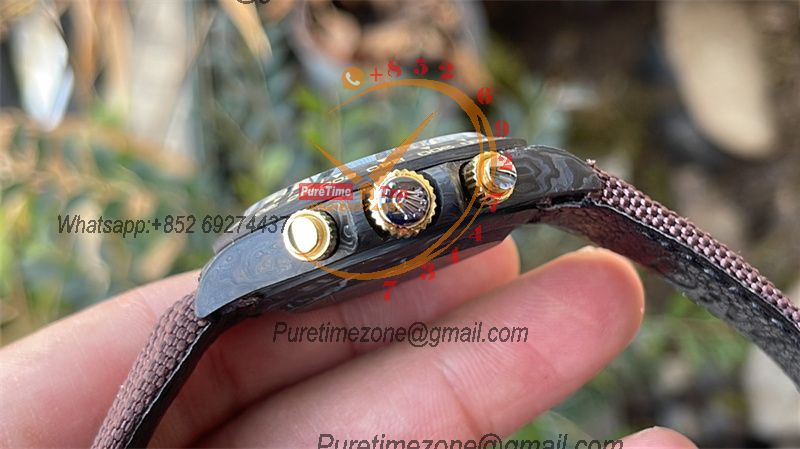 WWF Daytona Cronus Art X ETA A7750 Automatic Chronograph Mens WatchForged Carbon Angry Crocodile Dial Pink Nylon