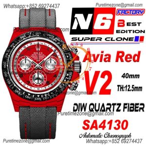 Daytona DIW Red Carbon Avia Red SA4130 Autoamtic Chronograph Mens Watch Best Edition N6F V2 Red Dial Nylon $1,500.00 $1,250.00