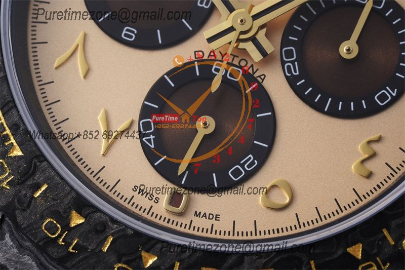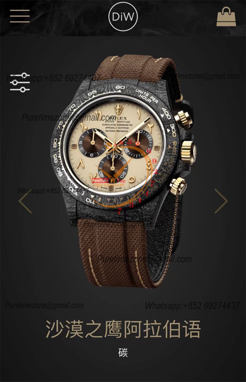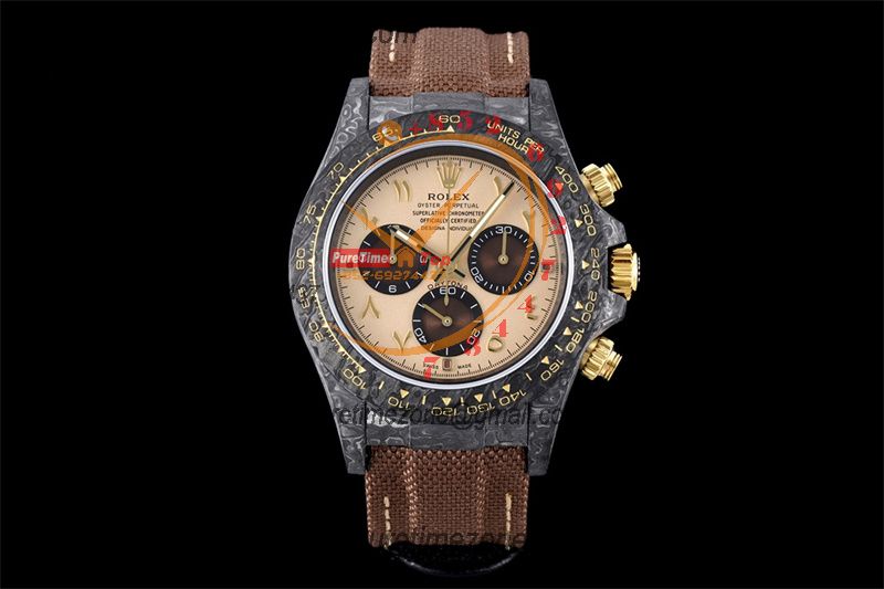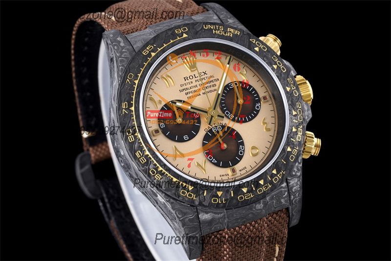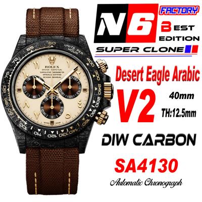Home Rolex Daytona Cosmograph Daytona DIW Black Carbon Desert Eagle Arabic SA4130 Autoamtic Chronograph Mens Watch Best Edition N6F V2 Gold Dial Nylon