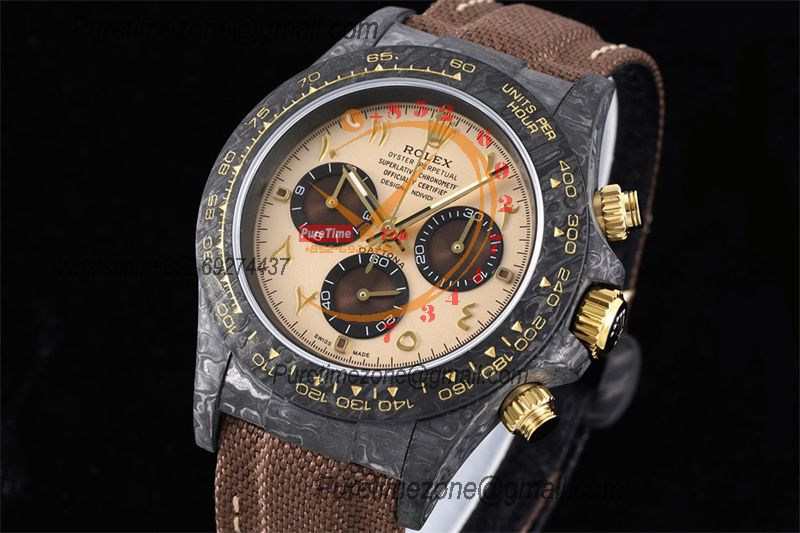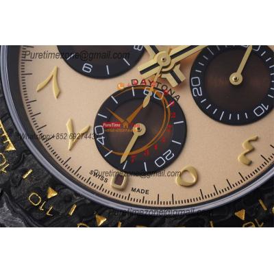 Daytona DIW Black Carbon Desert Eagle Arabic SA4130 Autoamtic Chronograph Mens Watch Best Edition N6F V2 Gold Dial Nylon