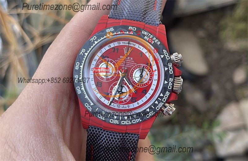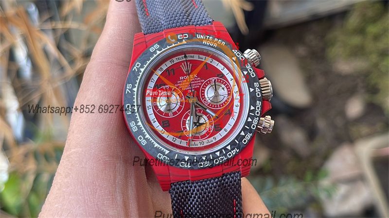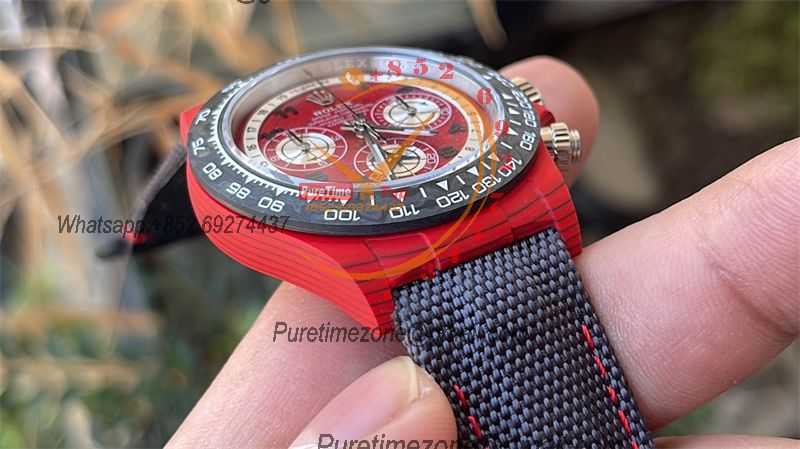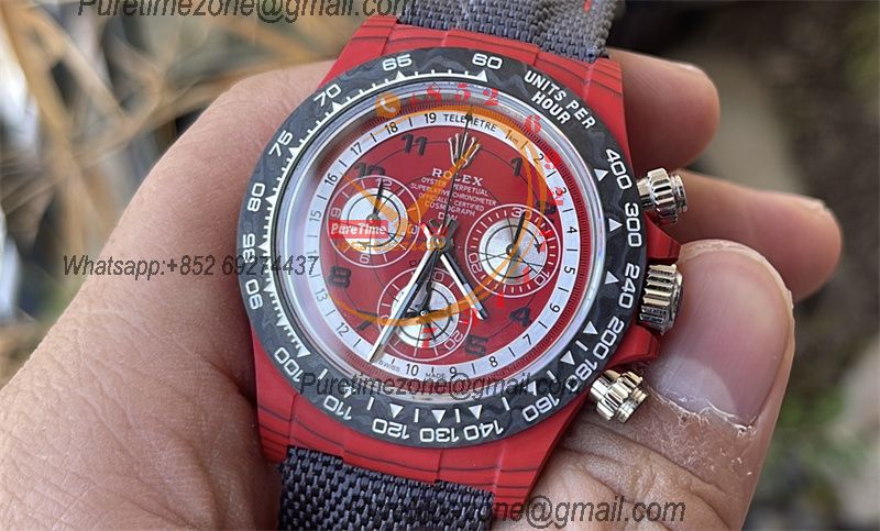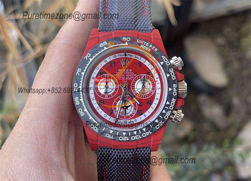 Home Rolex Daytona Cosmograph Daytona DIW Red Carbon Avia Red SA4130 Autoamtic Chronograph Mens Watch Best Edition N6F V2 Red Dial Nylon