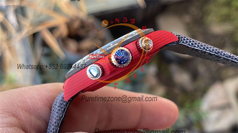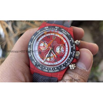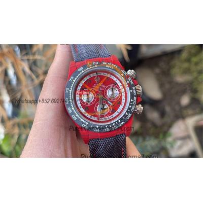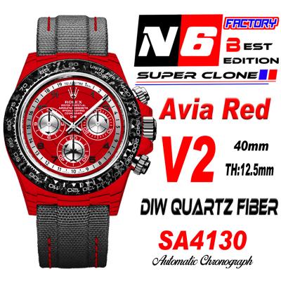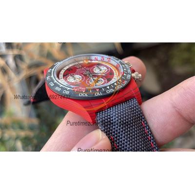 Daytona DIW Red Carbon Avia Red SA4130 Autoamtic Chronograph Mens Watch Best Edition N6F V2 Red Dial Nylon