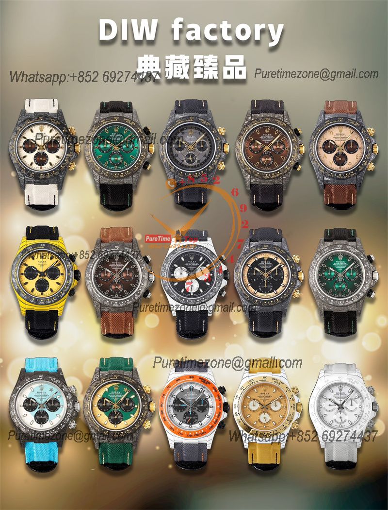 TWF Daytona DIW A7750 Automatic Mens Watch Carbon Case and Bezel Colorfu Dial on Black Nylon Strap Best Edition
