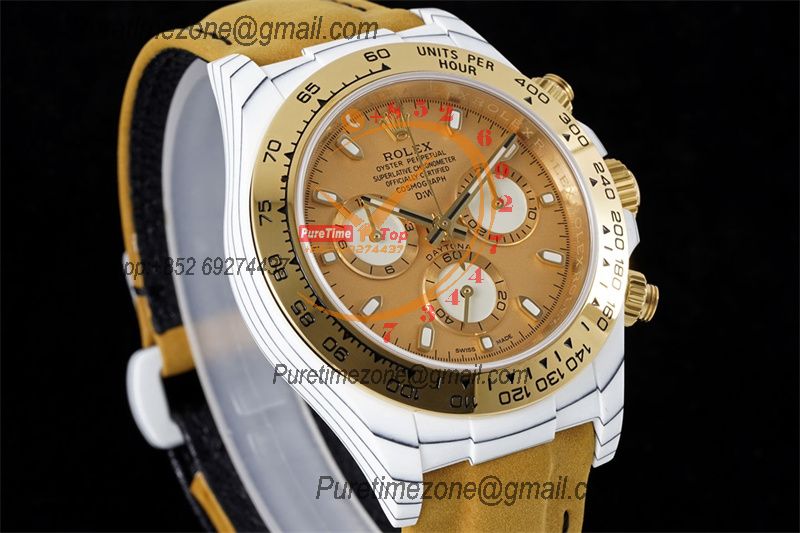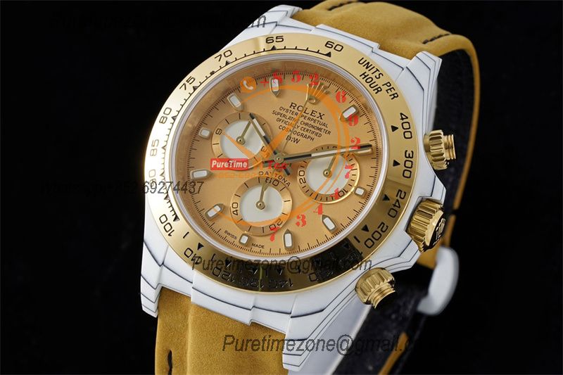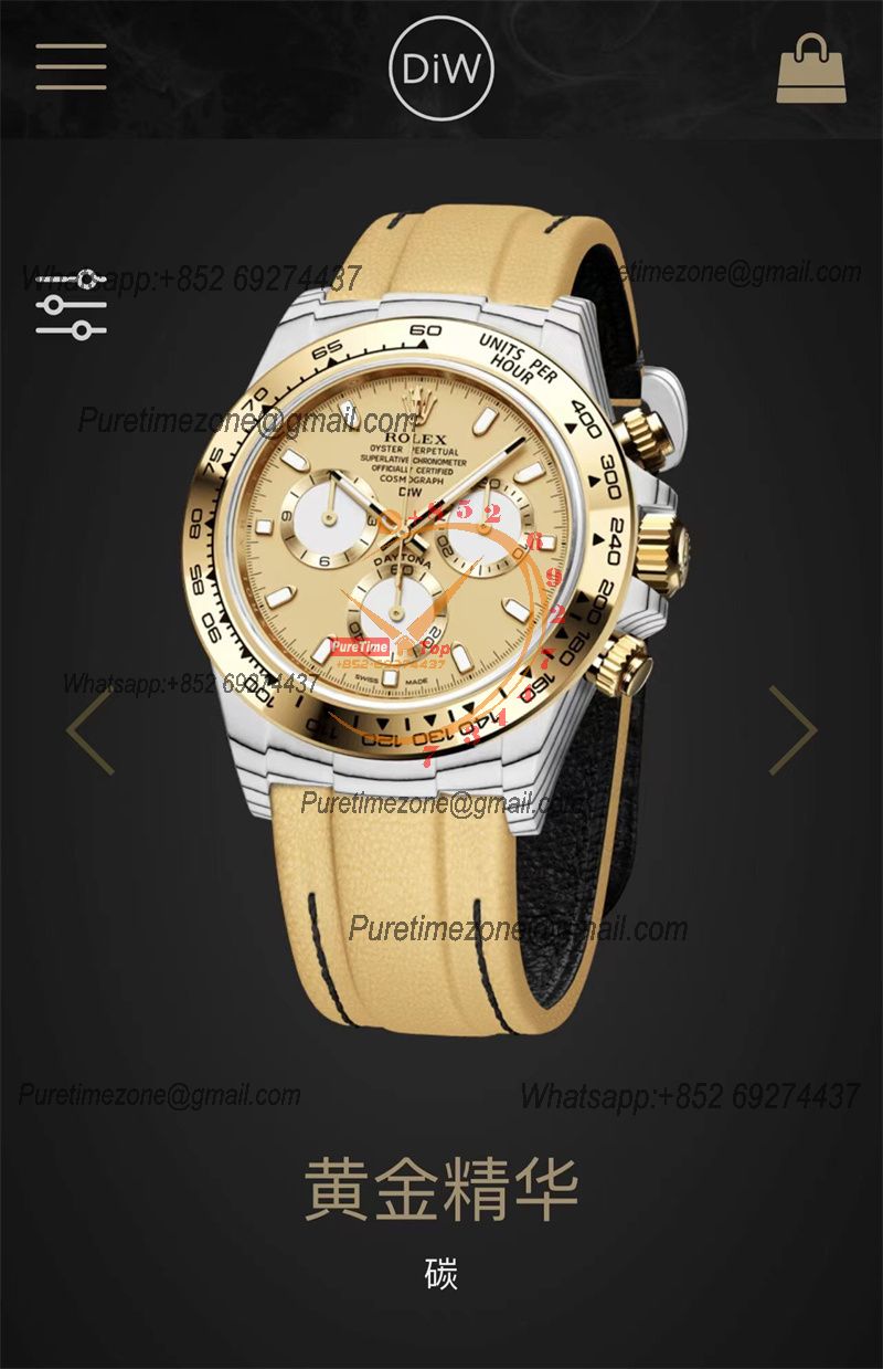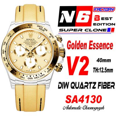 Home Rolex Daytona Cosmograph Daytona DIW White CarbonGolden Essence SA4130 Autoamtic Chronograph Mens Watch Best Edition N6F V2 Gold Dial Nylon