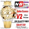Daytona DIW White CarbonGolden Essence SA4130 Autoamtic Chronograph Mens Watch Best Edition N6F V2 Gold Dial Nylon