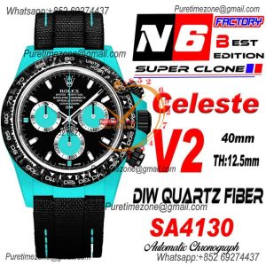 Daytona DIW Blue Carbon Celeste SA4130 Autoamtic Chronograph Mens Watch Best Edition N6F V2 Black Dial Nylon $1,500.00 $1,250.00