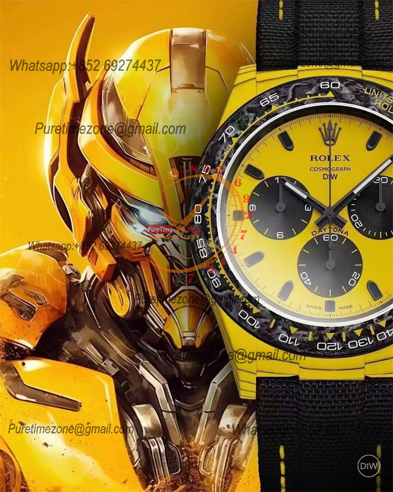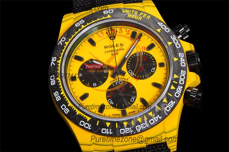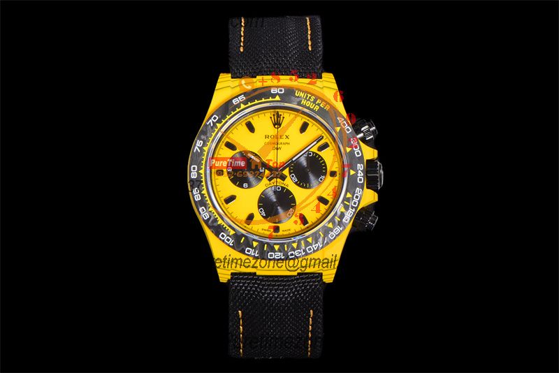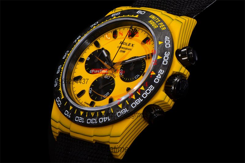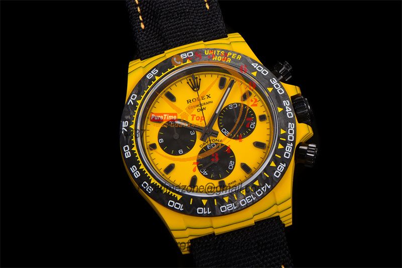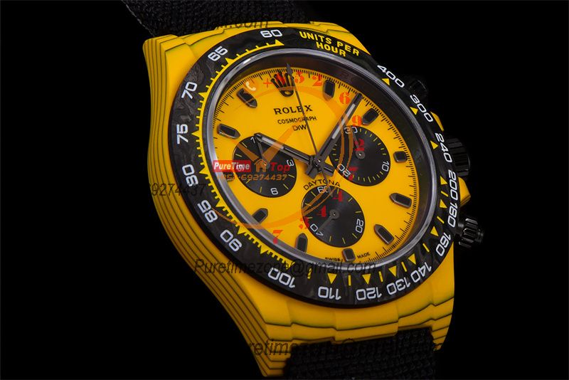 Home Rolex Daytona Cosmograph Daytona DIW Yellow Carbon Bumblebee SA4130 Autoamtic Chronograph Mens Watch Best Edition N6F V2 Yellow/Black Dial Nylon