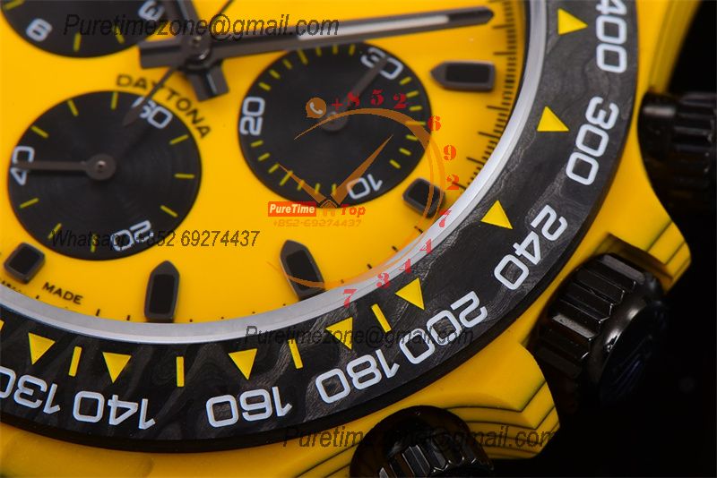 Daytona DIW Yellow Carbon Bumblebee SA4130 Autoamtic Chronograph Mens Watch Best Edition N6F V2 Yellow/Black Dial Nylon