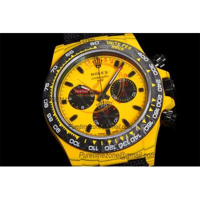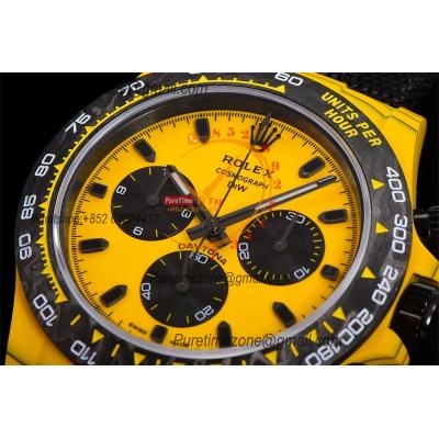 Daytona DIW Yellow Carbon Bumblebee SA4130 Autoamtic Chronograph Mens Watch Best Edition N6F V2 Yellow/Black Dial Nylon
