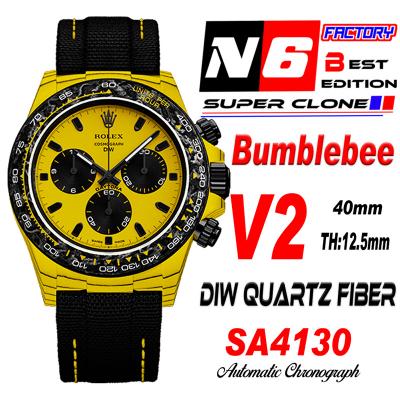 Home Rolex Daytona Cosmograph Daytona DIW Yellow Carbon Bumblebee SA4130 Autoamtic Chronograph Mens Watch Best Edition N6F V2 Yellow/Black Dial Nylon
