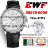 EWF Cellini Date 50519 A3165 Automatic Mens Watch 39mm Silver Dial Leather Strap Best Edition