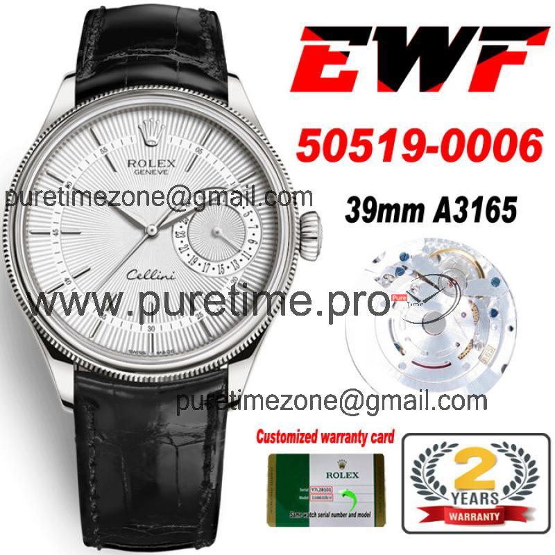 Home Rolex Cellini EWF Cellini Date 50519 A3165 Automatic Mens Watch 39mm Silver Dial Leather Strap Best Edition