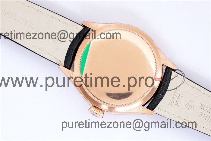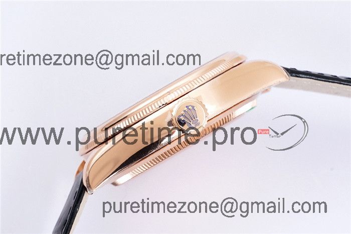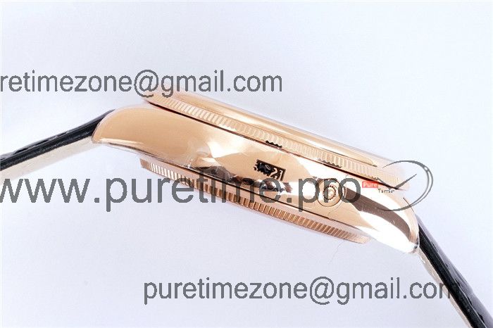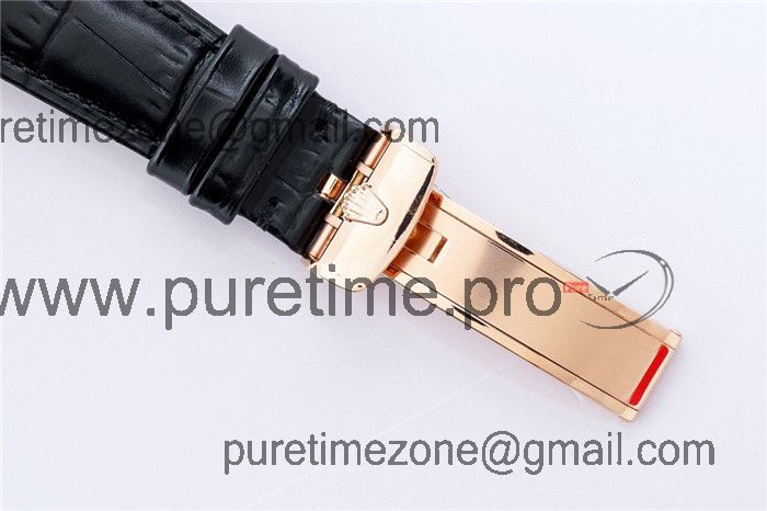 BSF Cellini Time 50505 A3132 Automatic Mens Watch Rose Gold Black Dial Leather Strap Best Edition