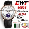 EWF Cellini Date 50535 Moon Phase A3195 Automatic Mens Watch 39mm RG White Dial Brown Leather Strap Best Edition