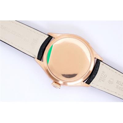 TWF Cellini Date 50515 A3165 Automatic Unisex Watch RG Black Dial Sticks Brown Leather Best Edition