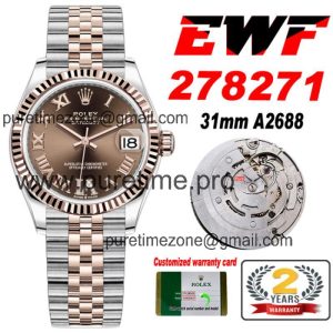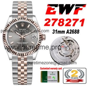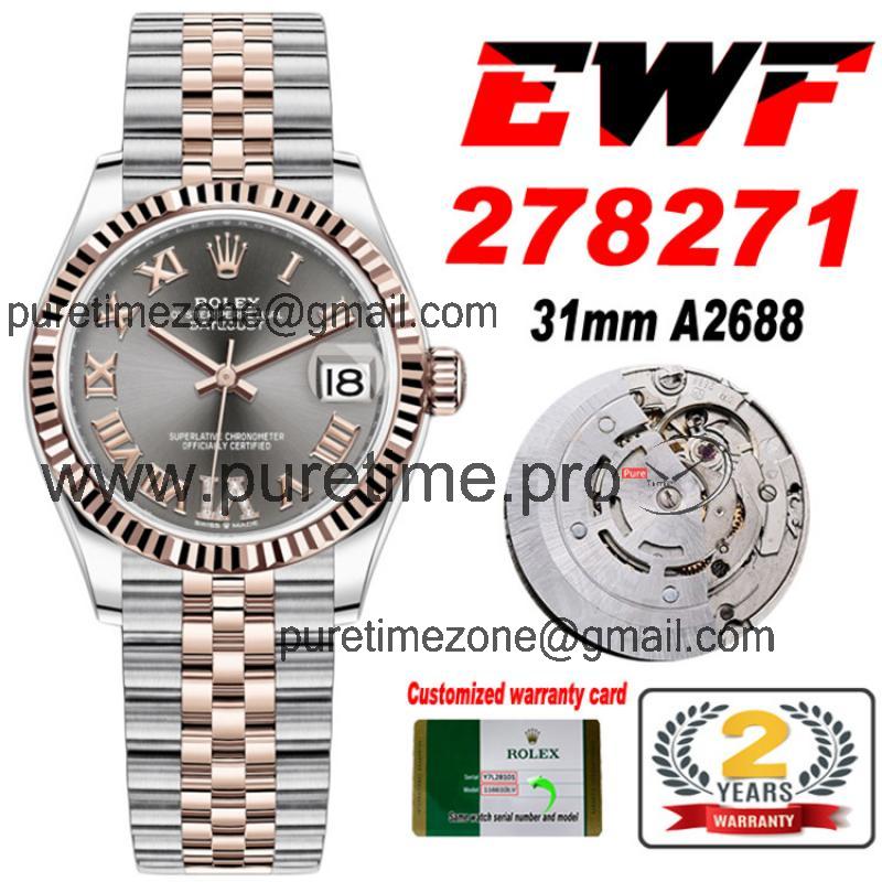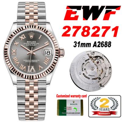 Home Rolex Datejust EWF Datejust 31 278271 A2688 Automatic Womens Watch Two Tone RG Gray Roman Dial SS Jubilee Bracelet Best Edition