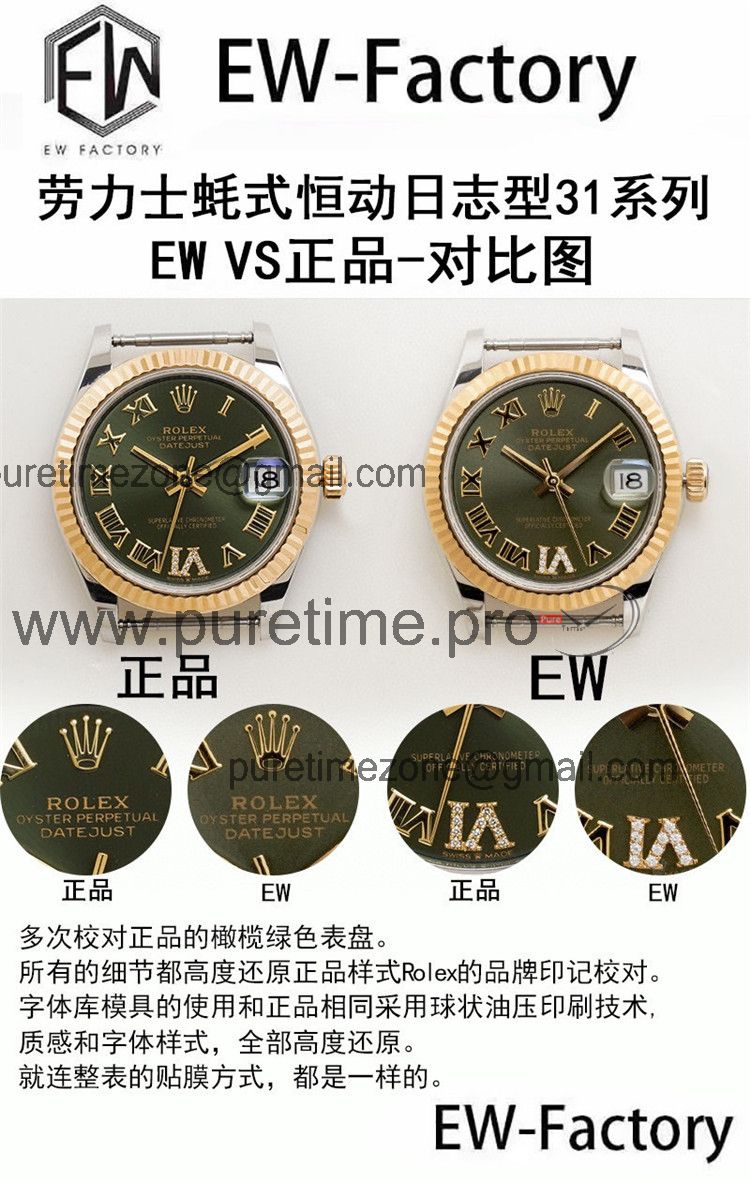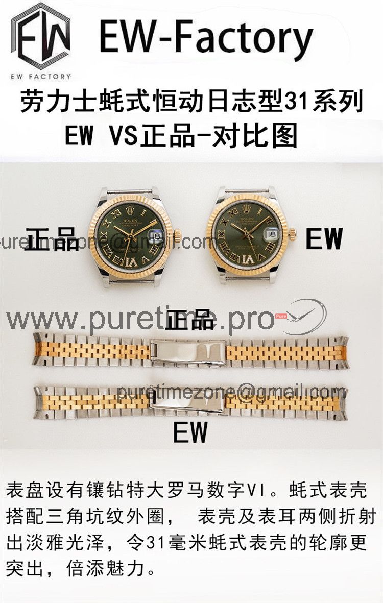 EWF Datejust 31 278273 A2688 Automatic Womens Watch Pink Roman VI Diamonds Dial SS Jubilee Bracelet Best Edition