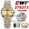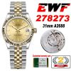 Home Rolex Datejust EWF Datejust 31 278273 A2688 Automatic Womens Watch Two Tone YG Champagne Stick Dial SS Jubilee Bracelet Best Edition