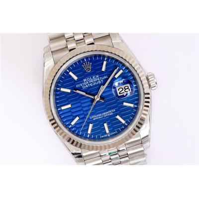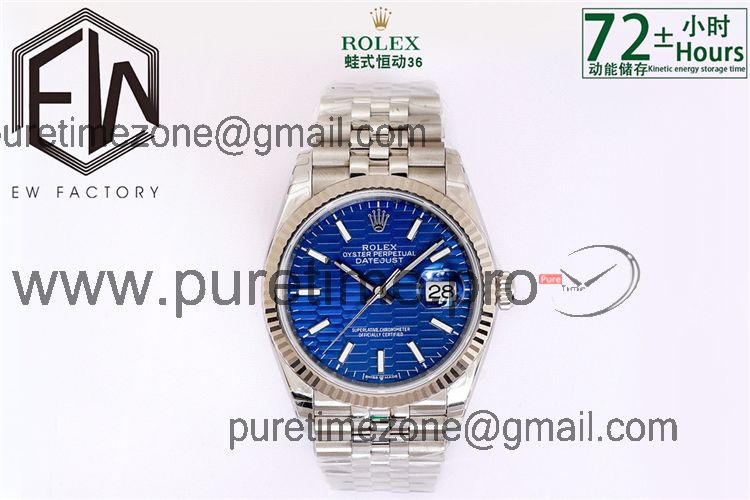 Home Rolex Datejust EWF Datejust 36 126200 A3235 Automatic Mens Watch Blue Fluted Motif Dial 904L SS Jubilee Bracelet Best Edition