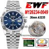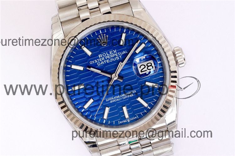 EWF Datejust 36 126200 A3235 Automatic Mens Watch Blue Fluted Motif Dial 904L SS Jubilee Bracelet Best Edition