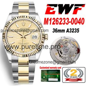 EWF Datejust 36 126200 A3235 Automatic Mens Watch Champagne Fluted Motif Dial 904L SS Oyster Bracelet Best Edition $540.00 $450.00