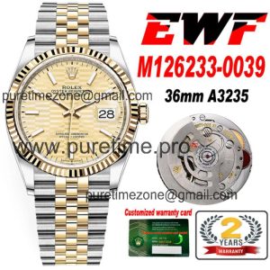 EWF Datejust 36 126200 A3235 Automatic Mens Watch Champagne Fluted Motif Dial 904L SS Oyster Bracelet Best Edition