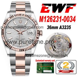 EWF Datejust 36 126200 A3235 Automatic Mens Watch Gray Fluted Motif Dial 904L SS Oyster Bracelet Best Edition $552.00 $460.00