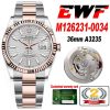 EWF Datejust 31 278273 A2688 Automatic Womens Watch Gray Roman Dial SS Jubilee Bracelet Best Edition
