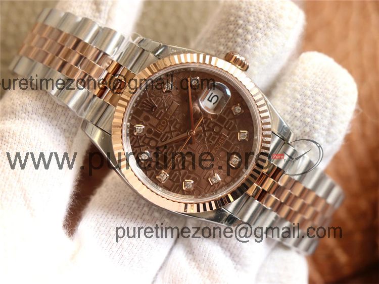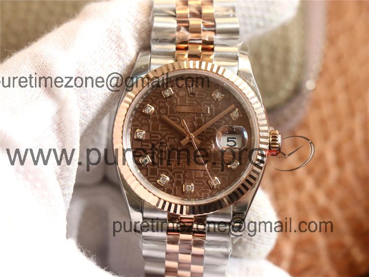 EWF Datejust 36 126233 A3235 Automatic Unisex Watch Two Tone RG Brown Logo Diamond Dial 904L Jubilee Bracelet Best Editi