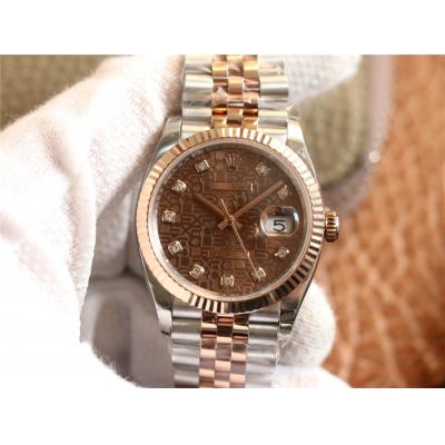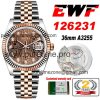 EWF Datejust 36 126233 A3235 Automatic Unisex Watch Two Tone RG Brown Logo Diamond Dial 904L Jubilee Bracelet Best Editi