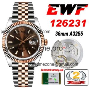 EWF Datejust 36 126233 A3235 Automatic Unisex Watch Two Tone RG Brown Stick Dial 904L Jubilee Bracelet Best Edition $552.00 $460.00