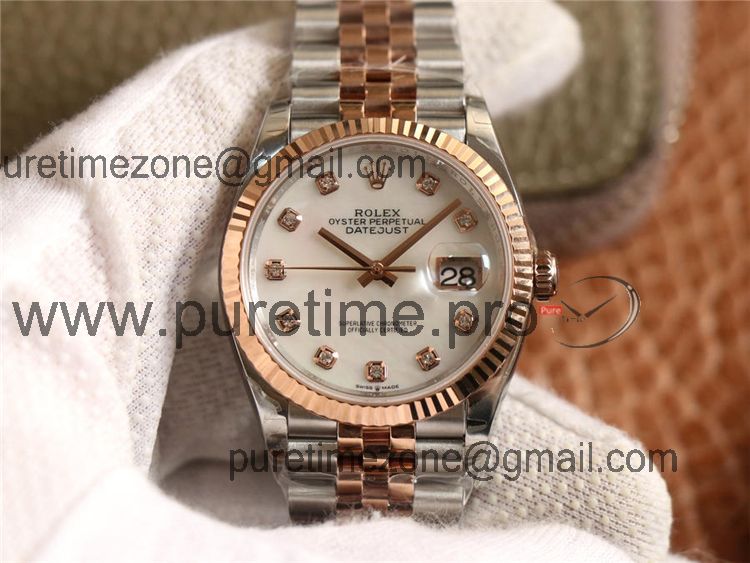 EWF Datejust 36 126233 A3235 Automatic Unisex Watch Two Tone RG MOP Diamond Dial 904L Jubilee Bracelet Best Edition