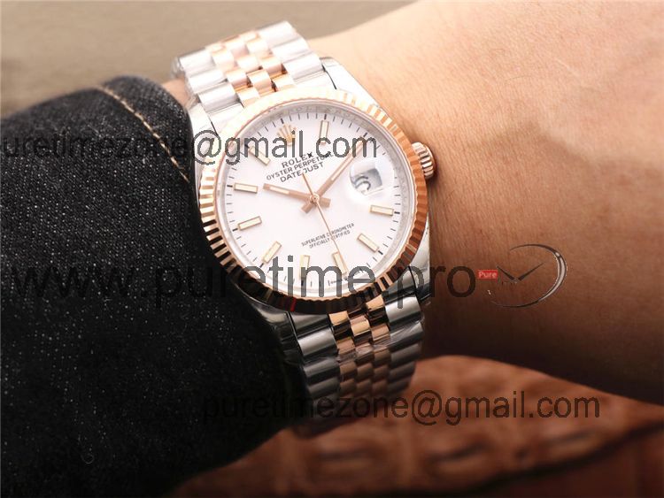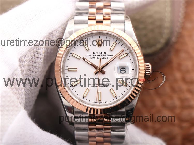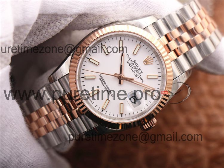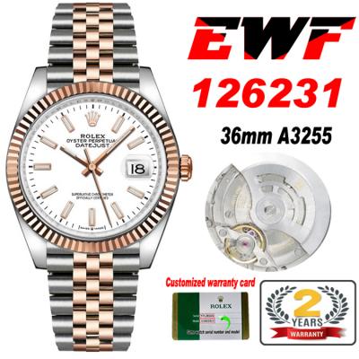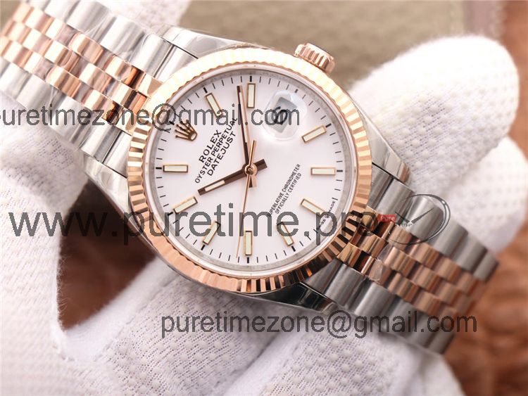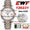EWF Datejust 36 126233 A3235 Automatic Unisex Watch Two Tone RG White Stick Dial 904L Jubilee Bracelet Best Edition