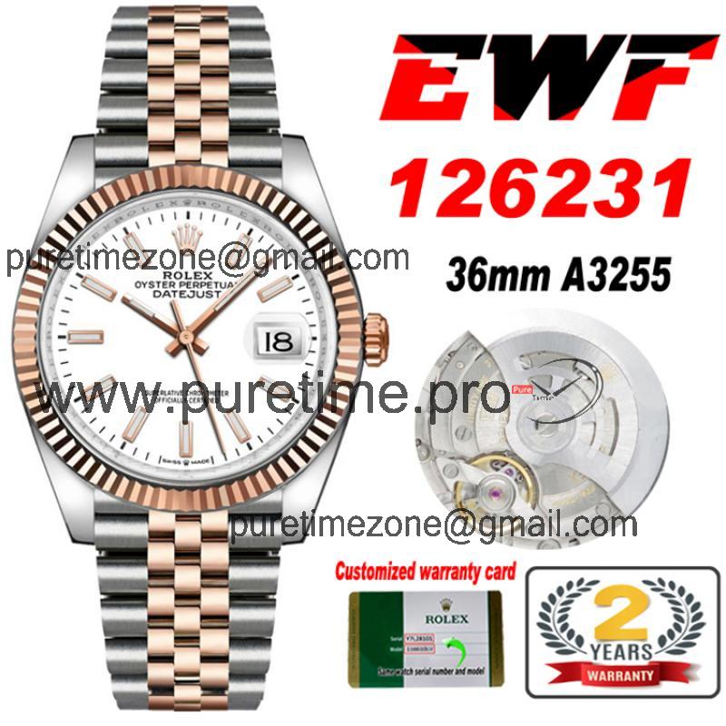 Home Rolex Datejust EWF Datejust 36 126233 A3235 Automatic Unisex Watch Two Tone RG White Stick Dial 904L Jubilee Bracelet Best Edition
