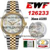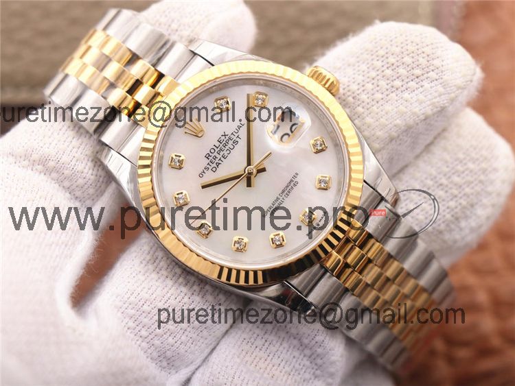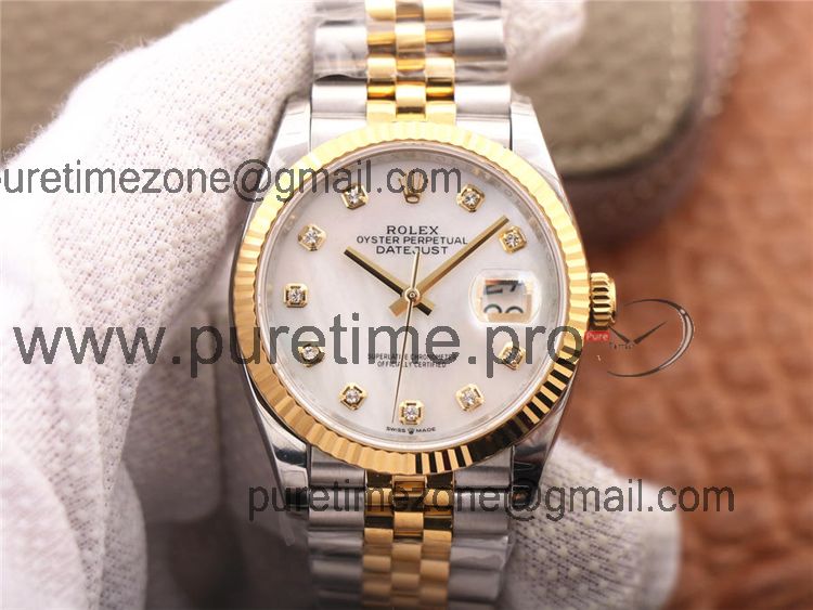 EWF Datejust 36 126233 A3235 Automatic Unisex Watch Two Tone YG MOP Diamonds Dial 904L Jubilee Bracelet Best Edition