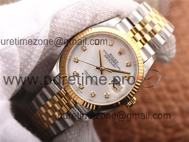 EWF Datejust 36 126233 A3235 Automatic Unisex Watch Two Tone YG MOP Diamonds Dial 904L Jubilee Bracelet Best Edition $552.00 $460.00