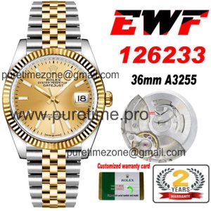 EWF Datejust 36 126233 A3235 Automatic Unisex Watch Two Tone YG Champagne Stick Dial 904L Jubilee Bracelet Best Edition $552.00 $460.00