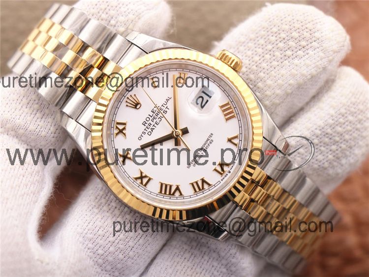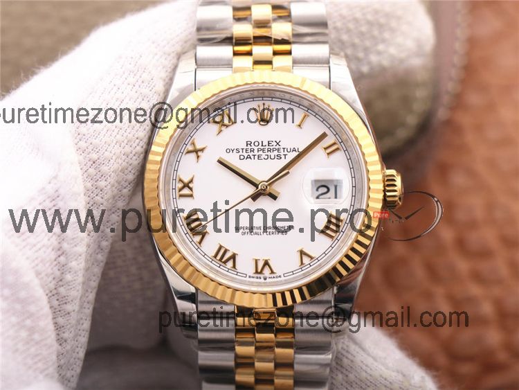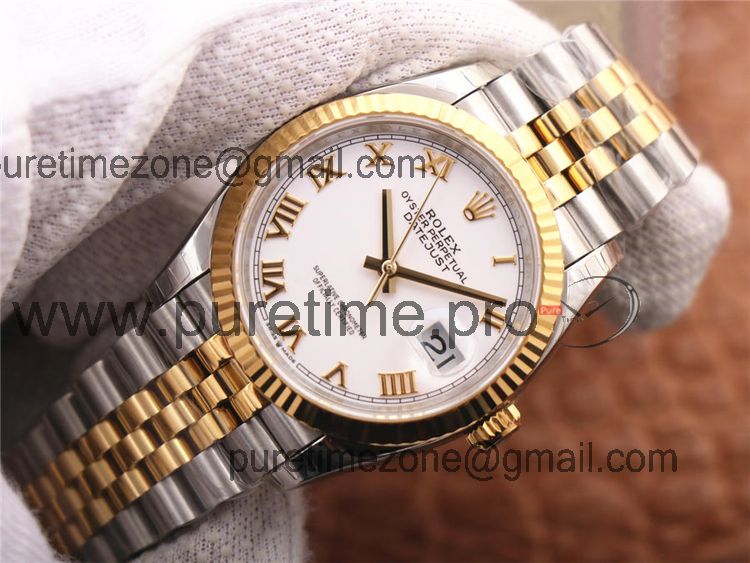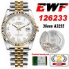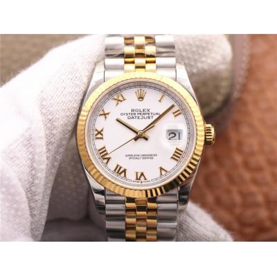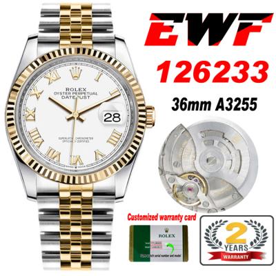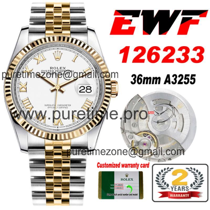 EWF Datejust 36 126233 A3235 Automatic Unisex Watch Two Tone YG White Roman Dial 904L Jubilee Bracelet Best Edition