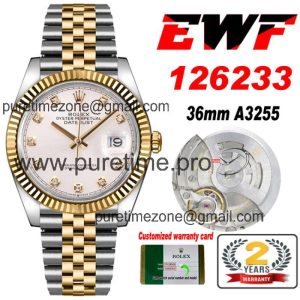 EWF Datejust 36 126233 A3235 Automatic Unisex Watch Two Tone YG White Stick Dial 904L Jubilee Bracelet Best Edition $552.00 $460.00