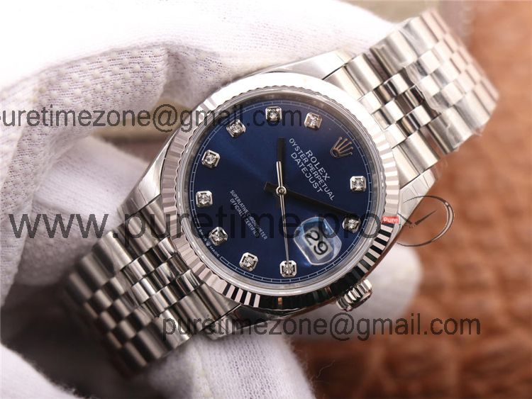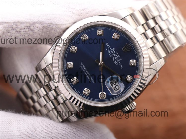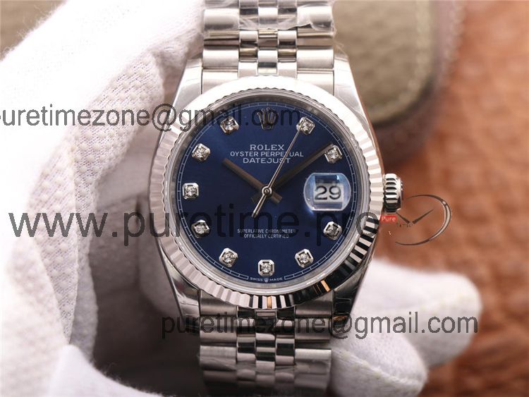 EWF Datejust 36 126234 A3235 Automatic Unisex Watch Fluted Bezel Blue Diamonds 904L SS Jubilee Bracelet Best Edition