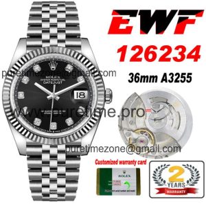 EWF Datejust 36 126234 A3235 Automatic Unisex Watch Fluted Bezel Black Diamonds 904L SS Jubilee Bracelet Best Edition $540.00 $450.00