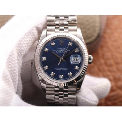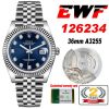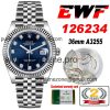 EWF Datejust 36 126234 A3235 Automatic Unisex Watch Fluted Bezel Blue Diamonds 904L SS Jubilee Bracelet Best Edition