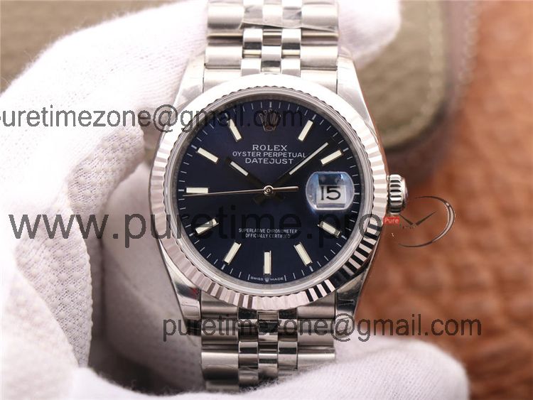 Home Rolex Datejust EWF Datejust 36 126234 A3235 Automatic Unisex Watch Fluted Bezel Blue Stick 904L SS Jubilee Bracelet Best Edition