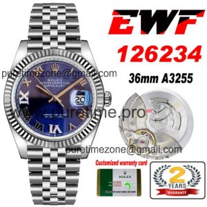 EWF Datejust 36 126234 A3235 Automatic Unisex Watch Fluted Blue Roman Diamonds 904L SS Jubilee Bracelet Best Edition $540.00 $450.00