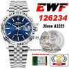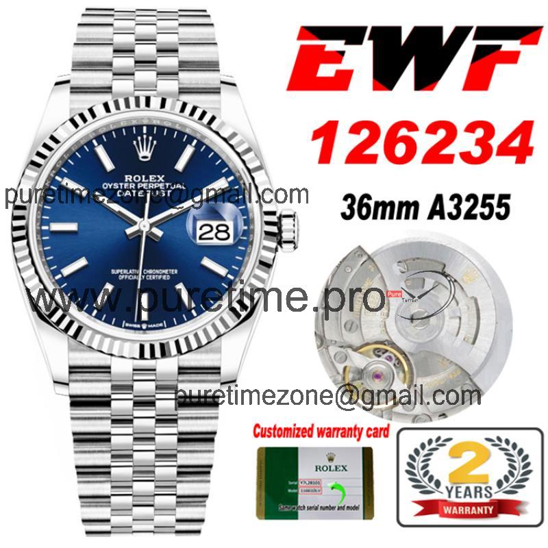 EWF Datejust 36 126234 A3235 Automatic Unisex Watch Fluted Bezel Blue Stick 904L SS Jubilee Bracelet Best Edition