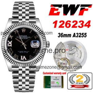 EWF Datejust 36 126234 A3235 Automatic Unisex Watch Fluted Gray Roman Diamonds 904L SS Jubilee Bracelet Best Edition $540.00 $450.00