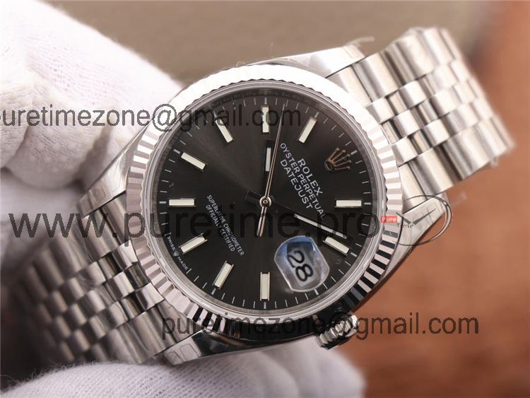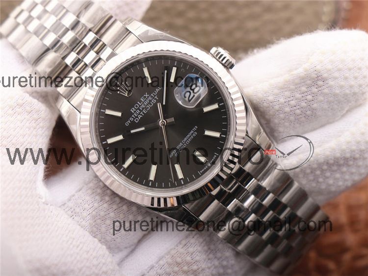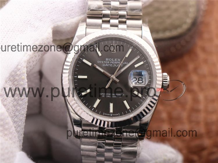 Home Rolex Datejust EWF Datejust 36 126234 A3235 Automatic Unisex Watch Fluted Bezel Gray Stick 904L SS Jubilee Bracelet Best Edition