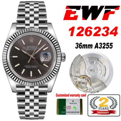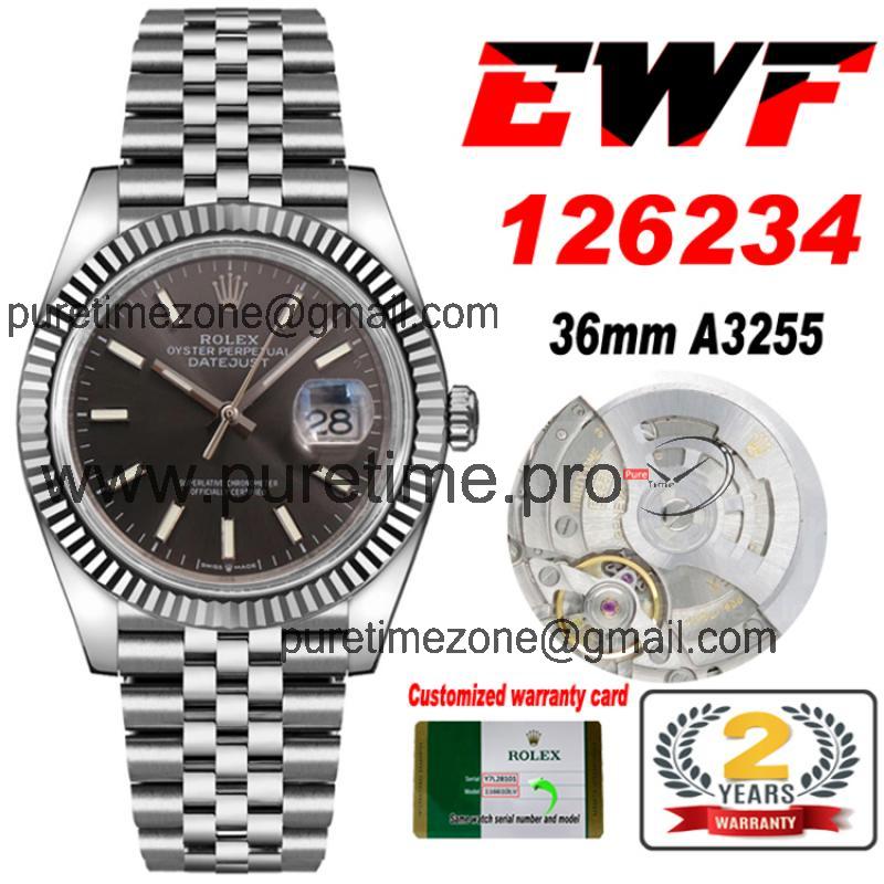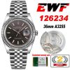 EWF Datejust 36 126234 A3235 Automatic Unisex Watch Fluted Bezel Gray Stick 904L SS Jubilee Bracelet Best Edition