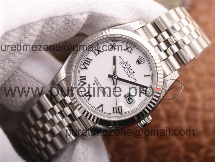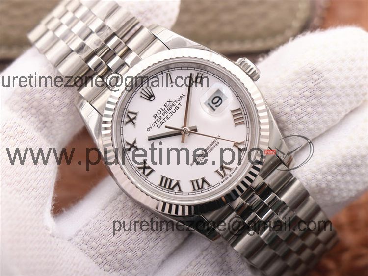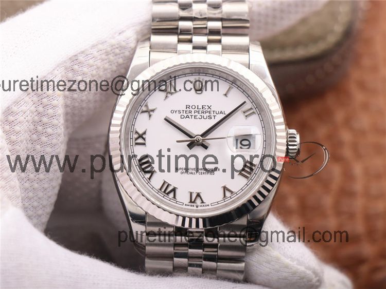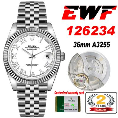 Home Rolex Datejust EWF Datejust 36 126234 A3235 Automatic Unisex Watch Fluted Bezel White Roman 904L SS Jubilee Bracelet Best Edition