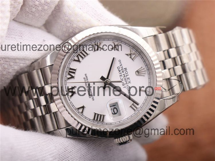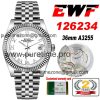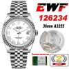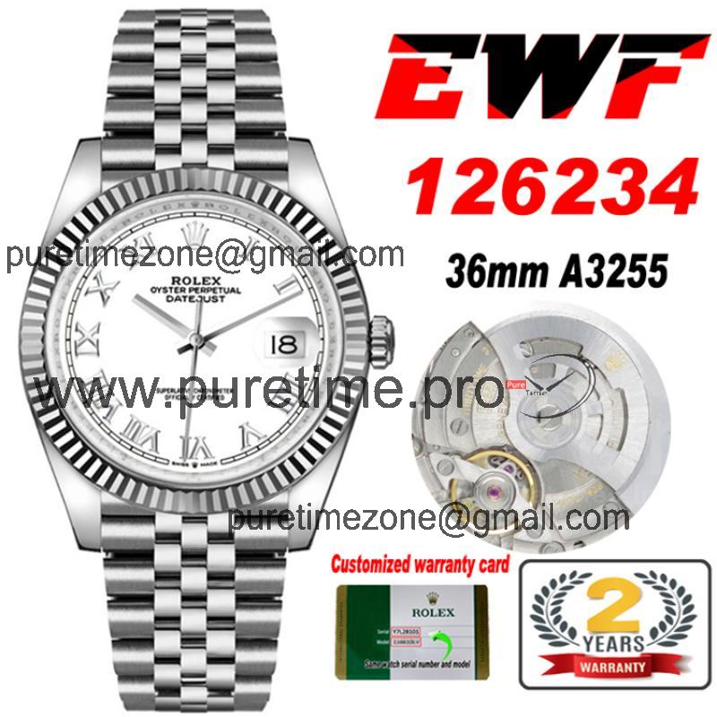 EWF Datejust 36 126234 A3235 Automatic Unisex Watch Fluted Bezel White Roman 904L SS Jubilee Bracelet Best Edition